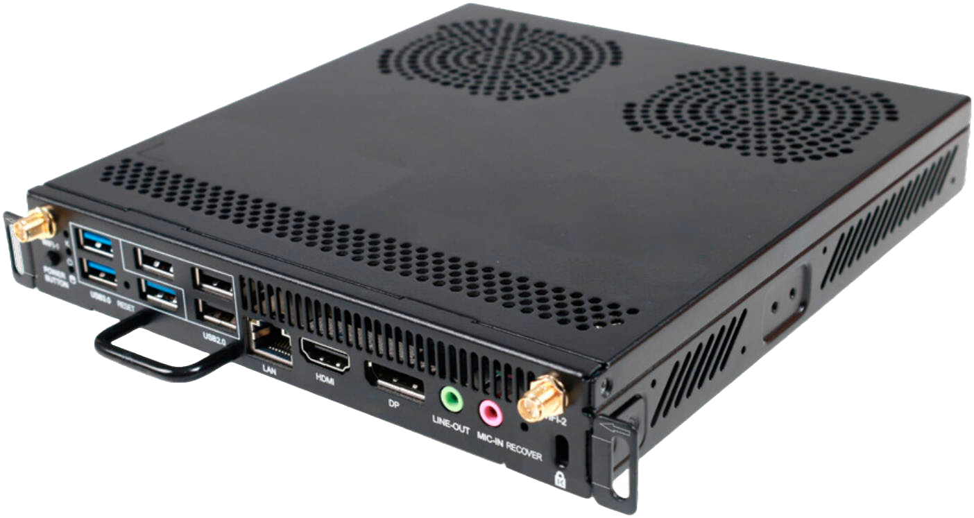 La OPS W021 Z es una computadora estándar de tipo pluggable desarrollada sobre el procesador Intel® Core™ i5-12400 de 12.ª generación y las especificaciones de diseño Intel OPS-C. Cuenta con alto rendimiento de procesamiento, bajo consumo de energía, mínimo nivel de ruido y tamaño compacto, lo que la hace ideal para aplicaciones simples y convenientes en entornos educativos y de reuniones, promoviendo así la transformación digital en la educación y las conferencias.